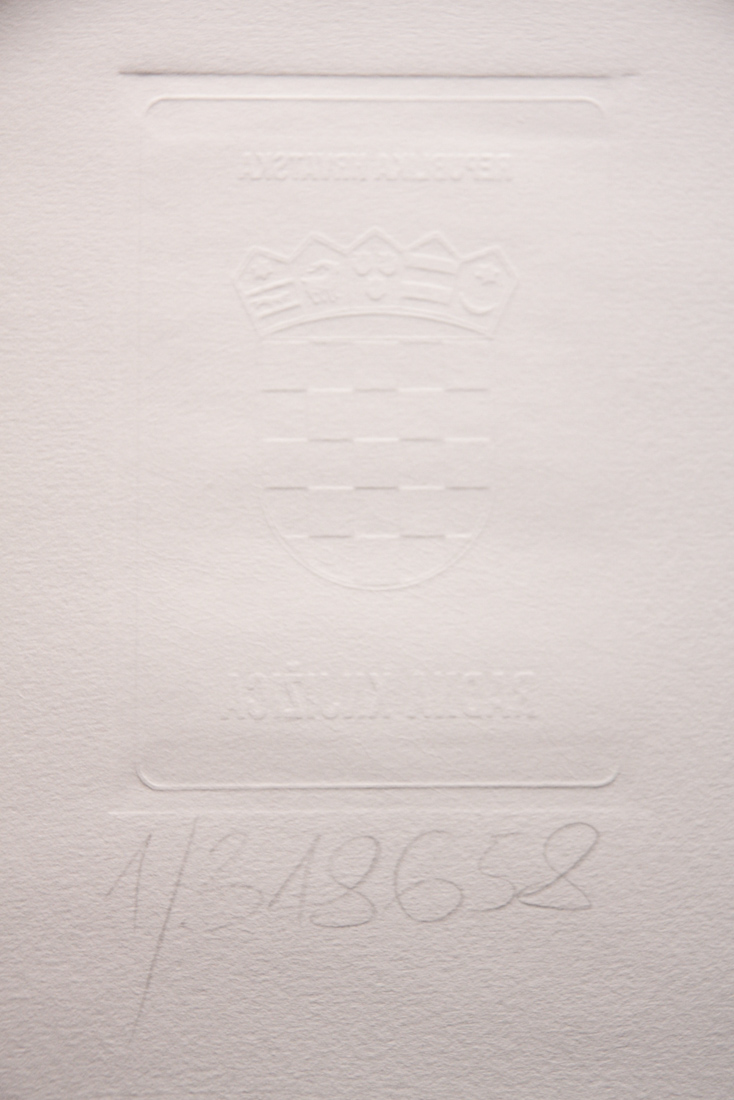 The work 1/318 658 continues the series of works that encompass a social theme. As in the earlier works the interaction with the protagonists is realized and presented in the form of a video recording and a graphic which constitutes an integral part of the work. The two video recordings portray two destinies: one of the twenty five year old Branimir, and one of the forty year old Goran, two different life stories imbued with thoughts, emotions, and conditions of the protagonists. In their stories the emphasis is put on unemployment which prompts people to try to earn money in different ways to ensure their existence. The graphic, i.e. the blind print of a work permit, together with the shared number 318 685 serves as a binder for the two videos. Unfortunately, the number is showing the tendency to rise. The work is still in progress, and with time the number of video recordings (portraits) will grow.