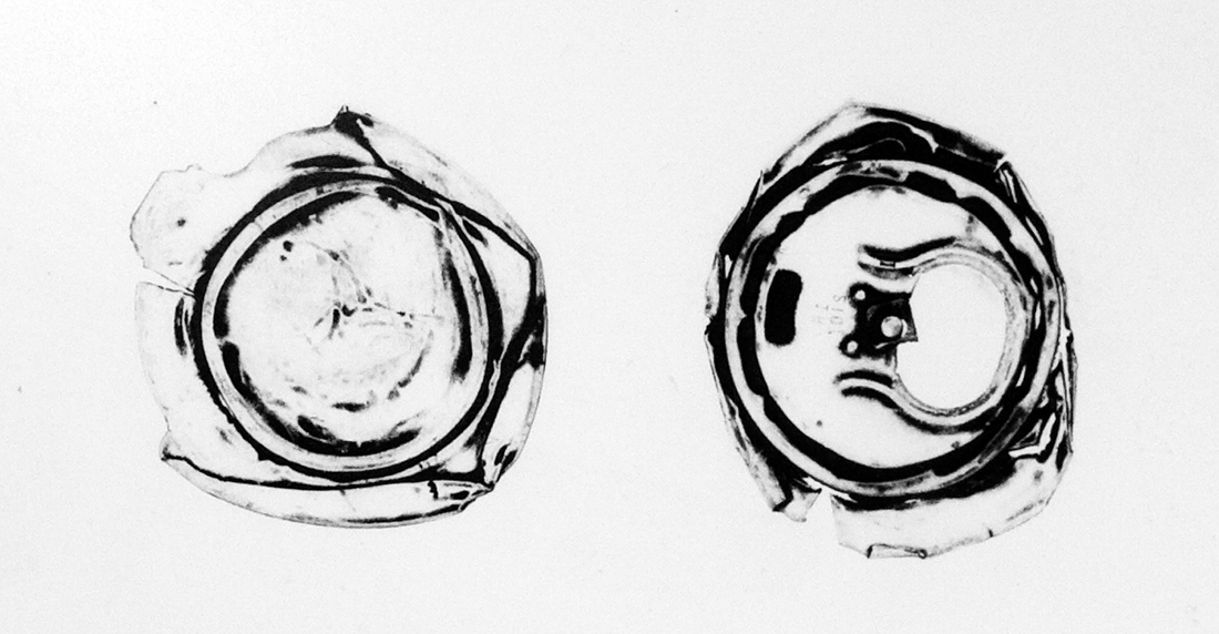Our environment’s regard for the people we meet every day, and their nightly metamorphosis into “searchers” for packaging that they sell the next day, which enables them to maintain their sole existence. Repurchase of packaging for the purpose of graphic print was my initial idea (graphic imprint (one can/packaging) – an imprint of one destiny). Seemingly an ordinary can becomes the focus of my exploration of the medium of graphics, and with further development an installation is born. The work comes as an answer to the systematical obliteration of human dignity where man is forced to “dig” through garbage to survive. I buy off the cans form people who collect them every day, and utilize them as art/graphic/installation. I question whether in this case a can is a matrix or is it Ready-made (“an object which does not have artistic origin, and which is, with or without intervention, marked or exhibited as a work of art”) in the function of a graphic matrix. There is no graphical intervention in the form of etching or engraving on the can/packaging, and they are, as such, untreated, and on the other hand perfectly treated, utilized as graphical matrices for the graphic sheets. During the process of printing of these graphics, two imprints are made. On the top sheet (FABRIANO), a deep imprint is made, as for the bottom paper (newspaper) there is an imprint of high print. The imprint on the bottom (newspaper) paper is included with the matrices, as they are put in small sealed plastic bags – a metaphor for the sealed fates of the “searchers”. The name of the work is connected with the quantity of collected, i.e. imprinted packaging. There is 133 imprints of the packaging in the graphic made by the division of 66.5 (0,5 – half a can) cans. Furthermore, 66.5 cans are worth 33.25 kuna (one can is worth 0.50 kuna) leaving 1 unique imprint in the end.