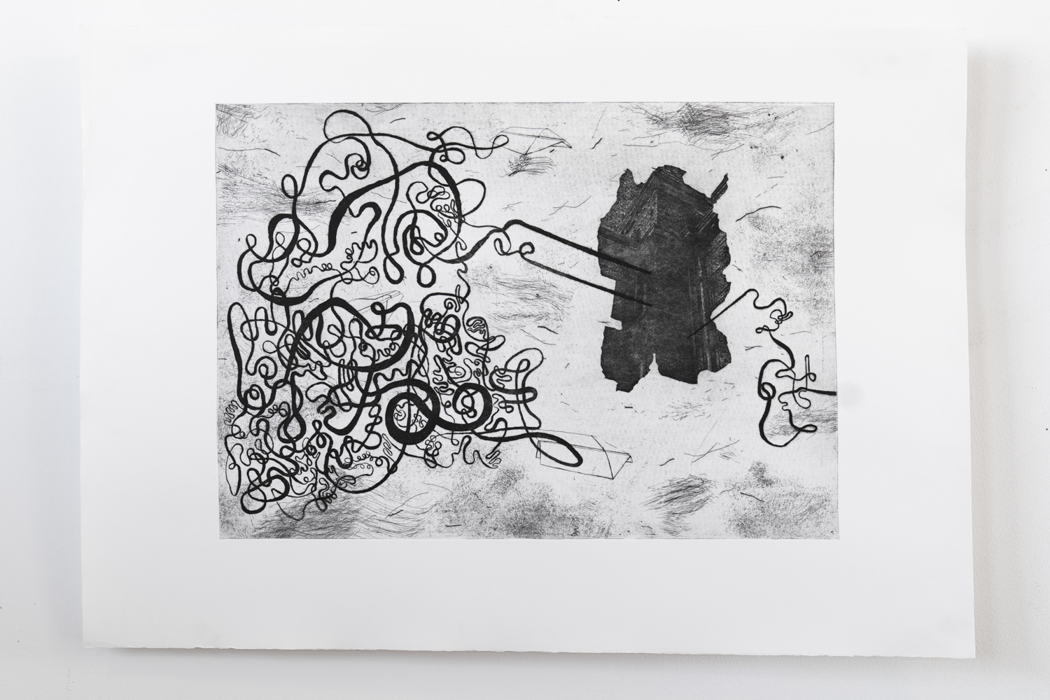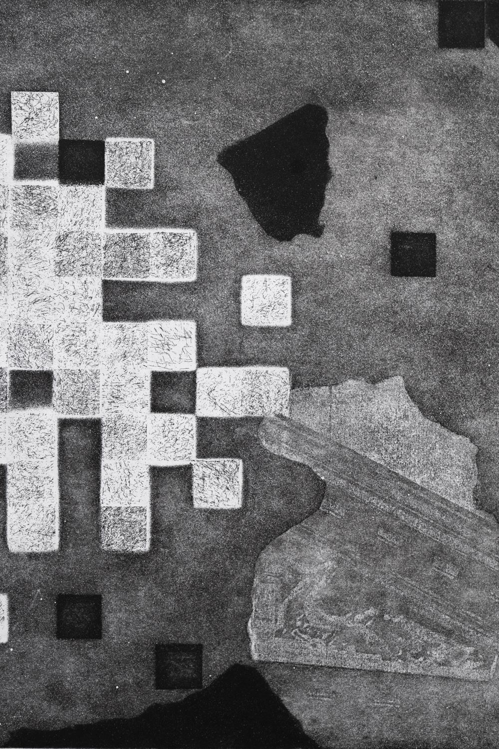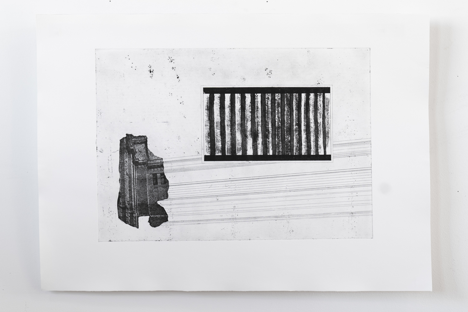 Uzevši u obzir socijalno angažirane teme s kojima se četo bavim, u ovom radu se nastojim odmaknuti od istih te se o(t)pustiti tijekom procesa rada koji Kožarić ističe kao jedan od najvažnijih. Tako, obilazeći trenutno nefunkcionalnu zgradu Umjetničkog paviljona u Zagrebu, uviđam pukotine nastale prirodnom katastrofom te iste fotografiram, pristupajući im kao fragmentima crteža koje je potres ostavio na uvid ovom monumentalnom zdanju. Tim činom fragmente zgrade na kojima su vidljiva oštećenja postavljam kao postamente nekim novim rješenjima, umjetničkim idejama izraslim iz katastrofe. U samom grafičkom procesu, te fragmente iskorištavam, transferiram ih na cinčane ploče te ih postavljam gotovo kao povijesne artefakte (kako na idejnoj, tako i na vizualnoj razini), rekomponiram i dekonstruiram radi nove konstrukcije. Zapisivanje ove ideje ujedno podrazumijeva da nosioc rada postaje dio oštećene i trenutno nefunkcionalne građevine koja je od važnosti na nacionalnu kulturu i umjetnost. Nadalje se javlja mogućnost realizacije koncepta i ideje u stvarnosti, što nažalost vrlo vjerojatno nije realno shodno odnosu našeg društva spram kulture. Ovaj proces se bavi i jednim pitanjem koje je i Ivan Kožarić često spominjao, a to je “Dokle seže sloboda?”. Ona je možda neprestano tik do nas, ali rijetki ju imaju hrabrosti (poput Kožarića) iskusiti.