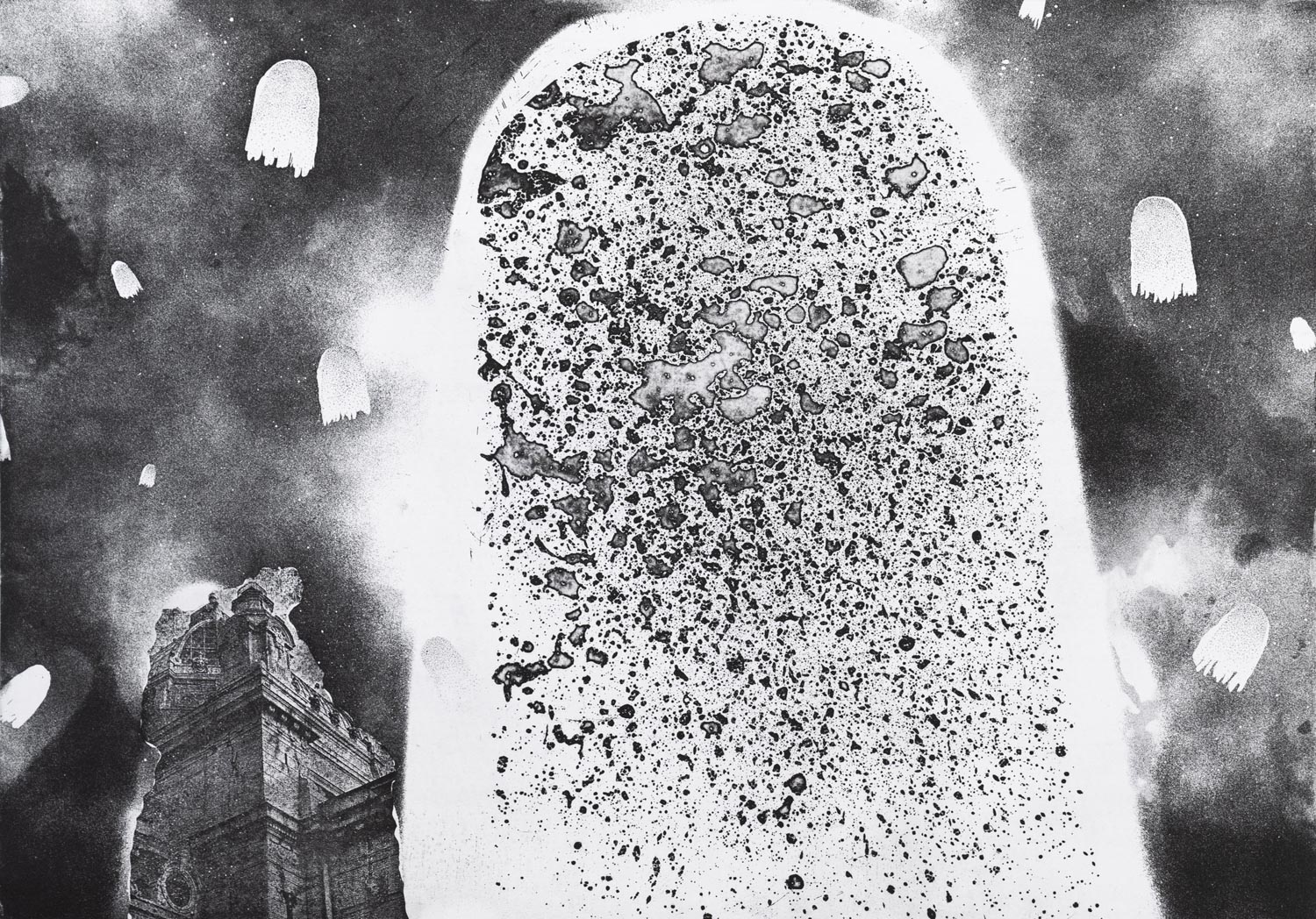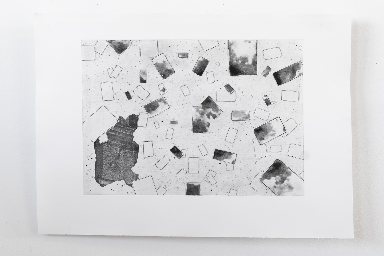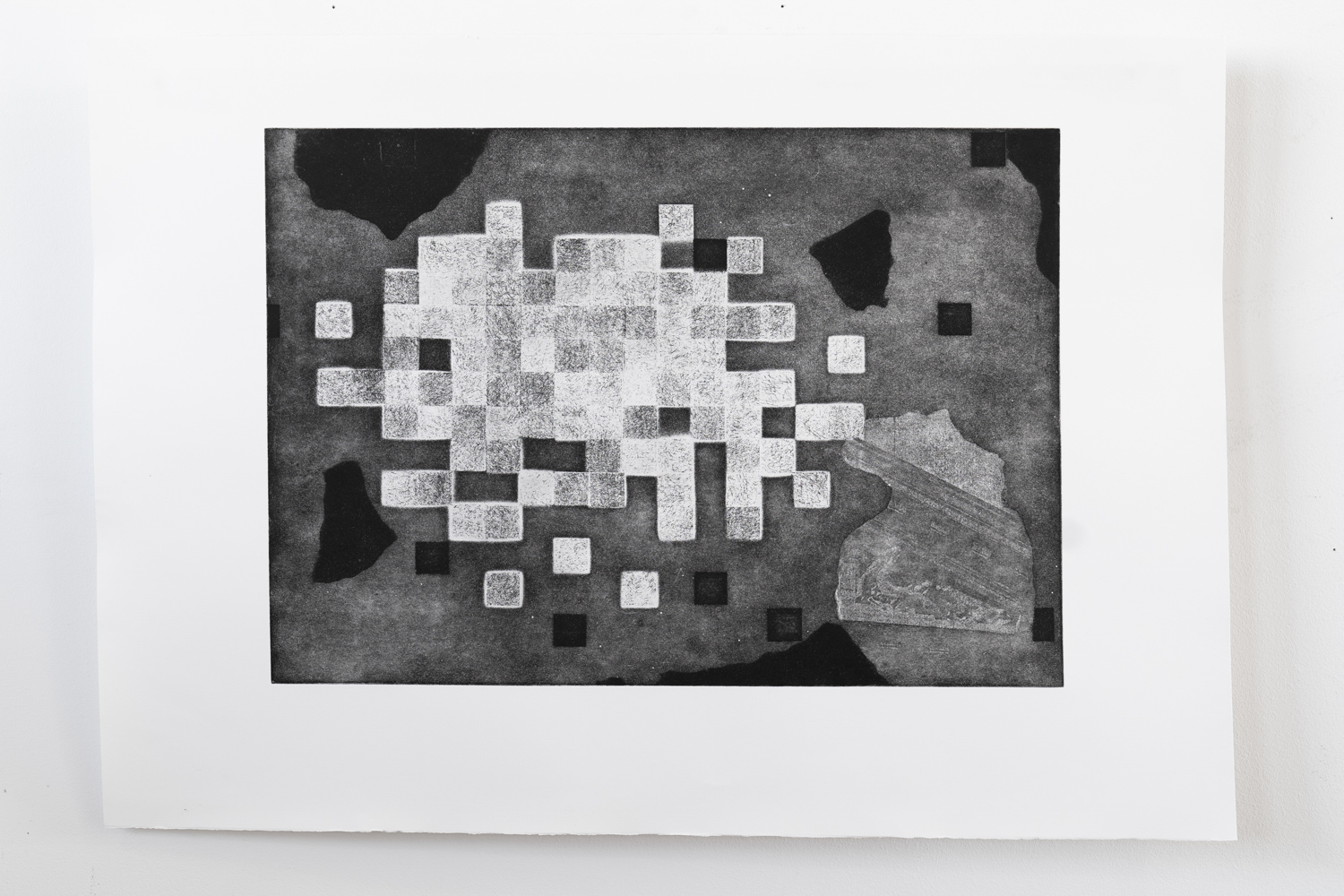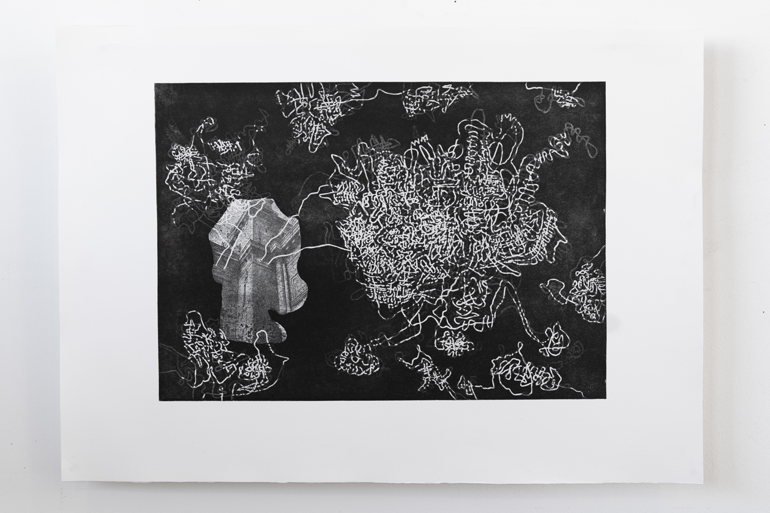 Uzevši u obzir socijalno angažirane teme s kojima se četo bavim, u ovom radu se nastojim odmaknuti od istih te se o(t)pustiti tijekom procesa rada koji Kožarić ističe kao jedan od najvažnijih. Tako, obilazeći trenutno nefunkcionalnu zgradu Umjetničkog paviljona u Zagrebu, uviđam pukotine nastale prirodnom katastrofom te iste fotografiram, pristupajući im kao fragmentima crteža koje je potres ostavio na uvid ovom monumentalnom zdanju. Tim činom fragmente zgrade na kojima su vidljiva oštećenja postavljam kao postamente nekim novim rješenjima, umjetničkim idejama izraslim iz katastrofe. U samom grafičkom procesu, te fragmente iskorištavam, transferiram ih na cinčane ploče te ih postavljam gotovo kao povijesne artefakte (kako na idejnoj, tako i na vizualnoj razini), rekomponiram i dekonstruiram radi nove konstrukcije. Zapisivanje ove ideje ujedno podrazumijeva da nosioc rada postaje dio oštećene i trenutno nefunkcionalne građevine koja je od važnosti na nacionalnu kulturu i umjetnost. Nadalje se javlja mogućnost realizacije koncepta i ideje u stvarnosti, što nažalost vrlo vjerojatno nije realno shodno odnosu našeg društva spram kulture. Ovaj proces se bavi i jednim pitanjem koje je i Ivan Kožarić često spominjao, a to je “Dokle seže sloboda?”. Ona je možda neprestano tik do nas, ali rijetki ju imaju hrabrosti (poput Kožarića) iskusiti.