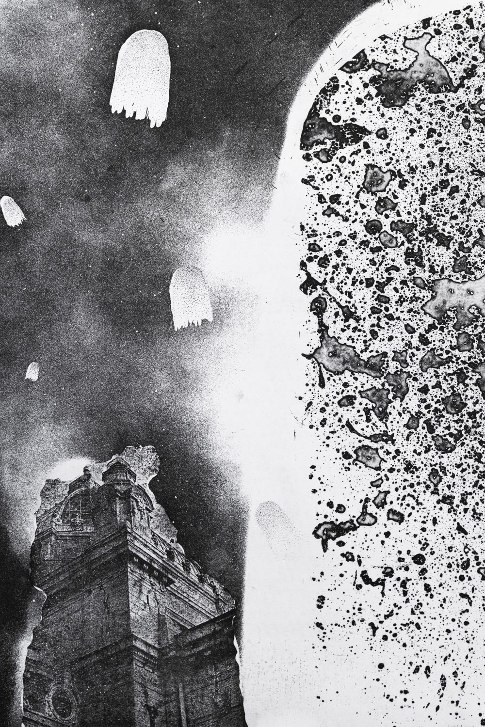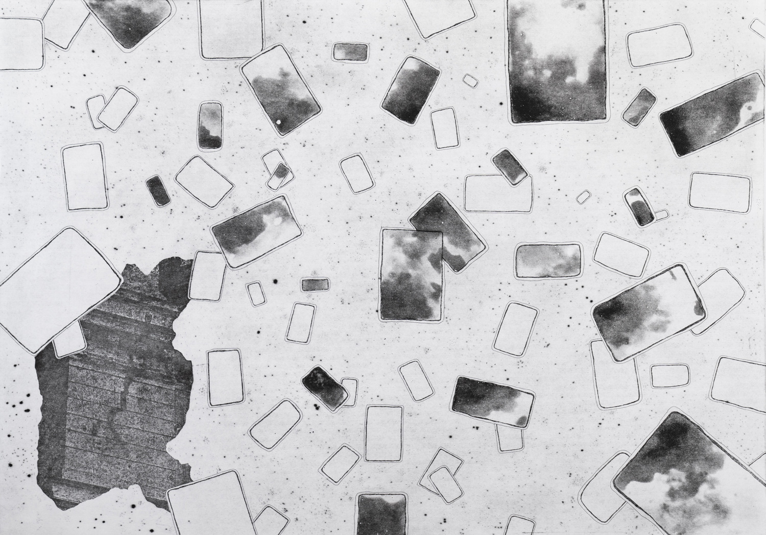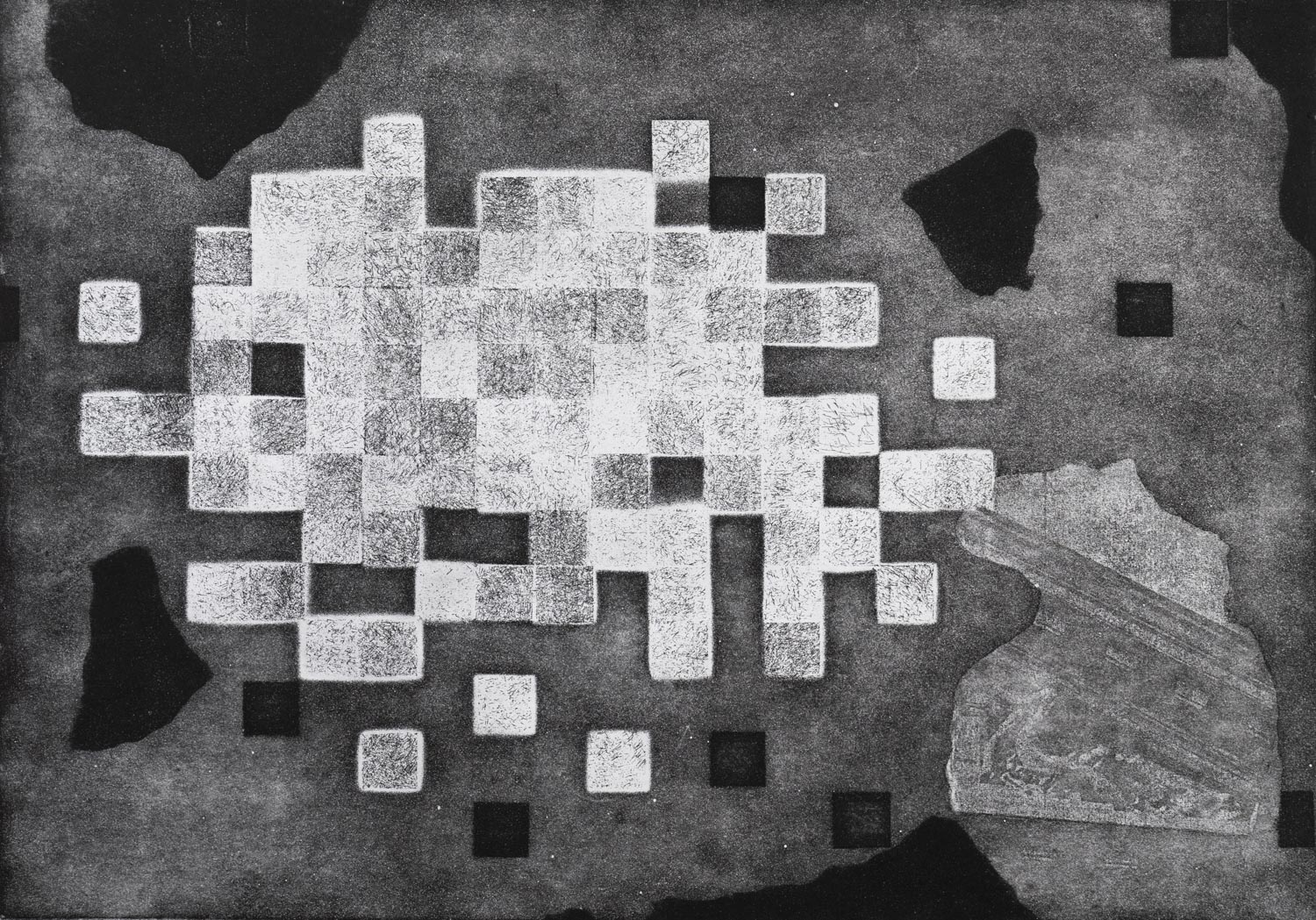 Uzevši u obzir socijalno angažirane teme s kojima se četo bavim, u ovom radu se nastojim odmaknuti od istih te se o(t)pustiti tijekom procesa rada koji Kožarić ističe kao jedan od najvažnijih. Tako, obilazeći trenutno nefunkcionalnu zgradu Umjetničkog paviljona u Zagrebu, uviđam pukotine nastale prirodnom katastrofom te iste fotografiram, pristupajući im kao fragmentima crteža koje je potres ostavio na uvid ovom monumentalnom zdanju. Tim činom fragmente zgrade na kojima su vidljiva oštećenja postavljam kao postamente nekim novim rješenjima, umjetničkim idejama izraslim iz katastrofe. U samom grafičkom procesu, te fragmente iskorištavam, transferiram ih na cinčane ploče te ih postavljam gotovo kao povijesne artefakte (kako na idejnoj, tako i na vizualnoj razini), rekomponiram i dekonstruiram radi nove konstrukcije. Zapisivanje ove ideje ujedno podrazumijeva da nosioc rada postaje dio oštećene i trenutno nefunkcionalne građevine koja je od važnosti na nacionalnu kulturu i umjetnost. Nadalje se javlja mogućnost realizacije koncepta i ideje u stvarnosti, što nažalost vrlo vjerojatno nije realno shodno odnosu našeg društva spram kulture. Ovaj proces se bavi i jednim pitanjem koje je i Ivan Kožarić često spominjao, a to je “Dokle seže sloboda?”. Ona je možda neprestano tik do nas, ali rijetki ju imaju hrabrosti (poput Kožarića) iskusiti.