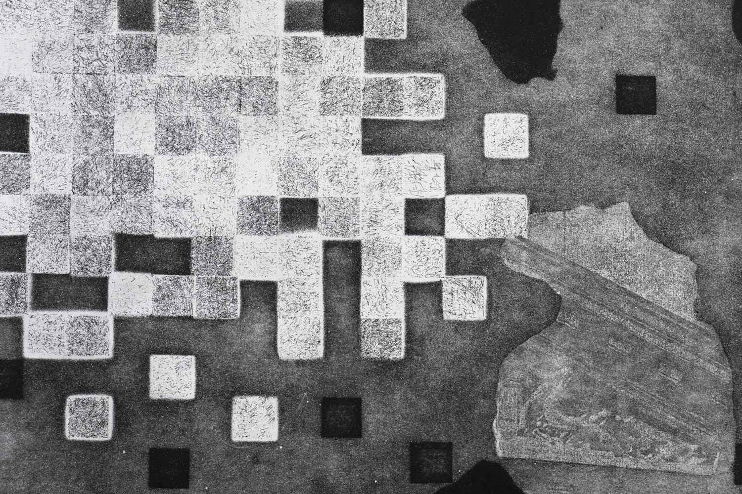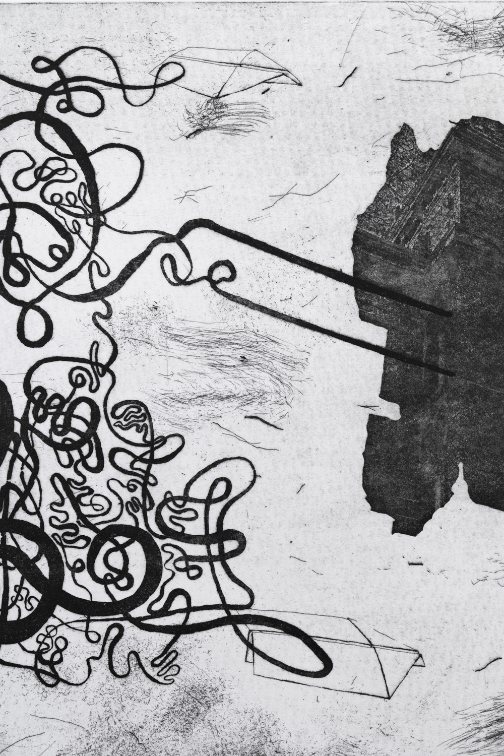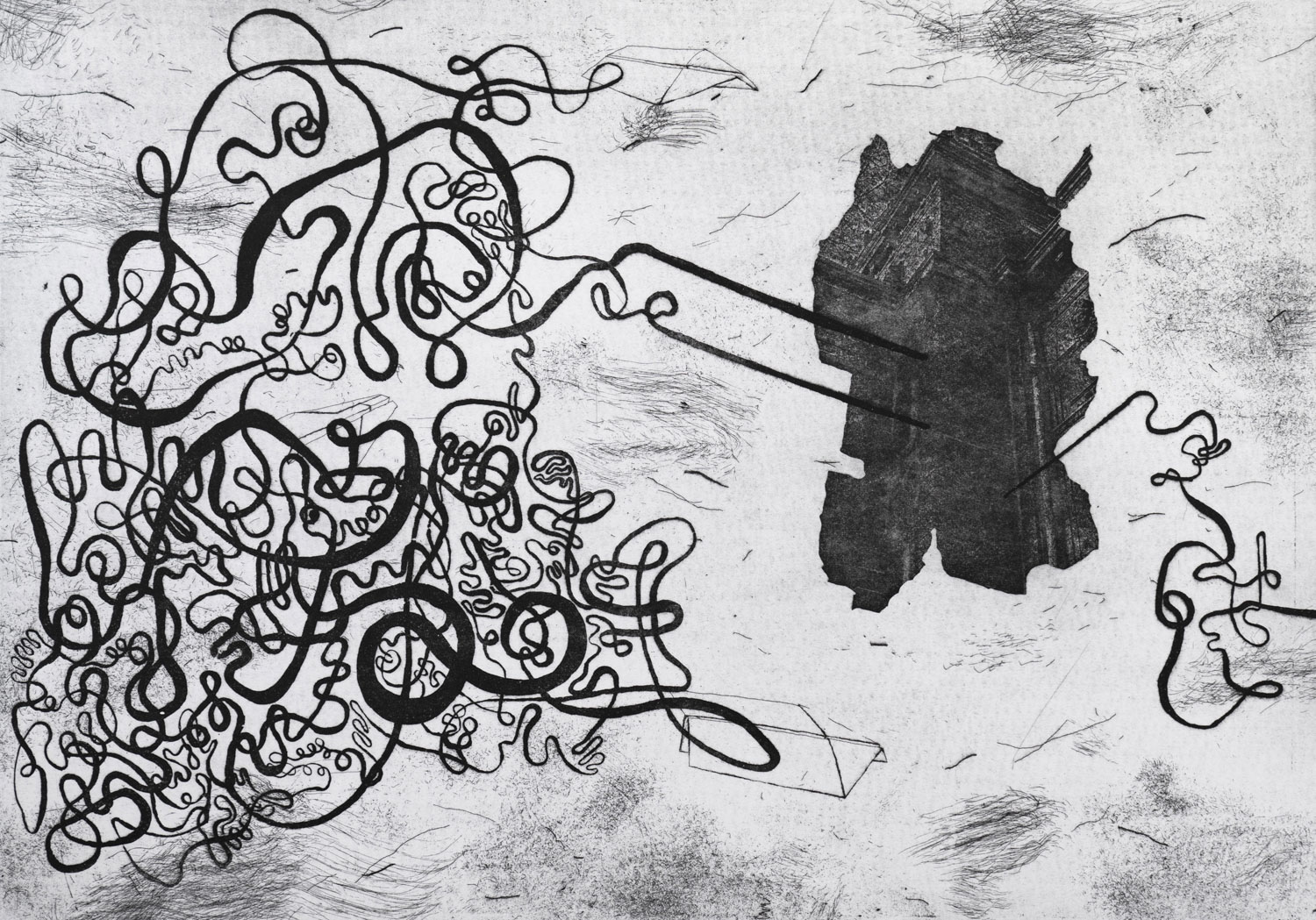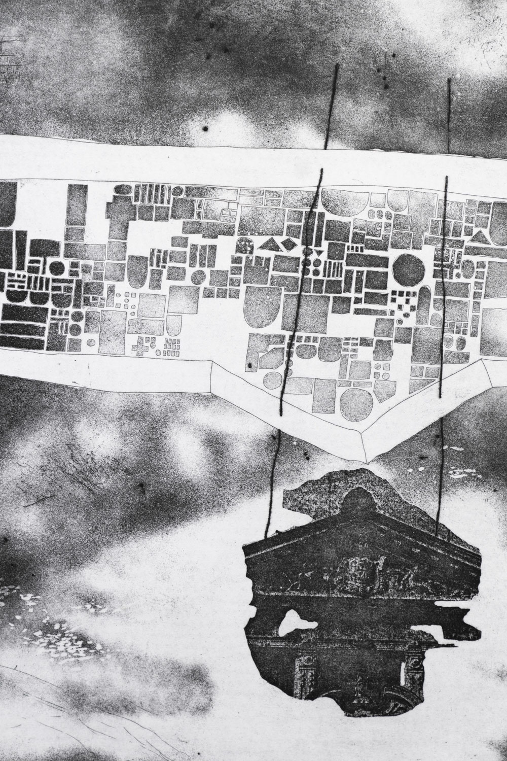 Taking into account the socially engaged topics with which I often deal, in this work I try to move away from them and let go during the working process, which Kožarić points out as one of the most important. Thus, visiting the currently non-functioning building of the Art Pavilion in Zagreb, I see the cracks created by a natural disaster and photograph them, approaching them as fragments of drawings that the earthquake left on this monumental building. In this act, I place the fragments of the building on which the damage is visible as pedestals for some new solutions and artistic ideas that grew out of the disaster. In the graphic process itself, I exploit these fragments, transfer them to zinc plates and place them almost like historical artifacts (both conceptually and visually), recompose and deconstruct them for new construction. Writing down this idea also implies that the bearer of the work becomes part of a damaged and currently non-functional building that is important for national culture and art. Furthermore, there is the possibility of realizing concepts and ideas in reality, which unfortunately is not realistic in accordance with the relationship of our society towards culture. This process also deals with one question that Ivan Kožarić often mentioned, namely “How far does freedom go?”. It may be constantly right next to us, but few have the courage (like Kožarić) to experience it.